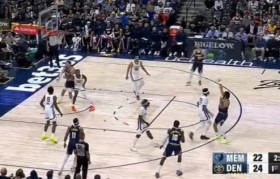 虎扑04月09日讯 NBA常规赛,掘金对阵灰熊的比赛正在进行中。第一节比赛,默里弧顶三分一箭穿心再中...